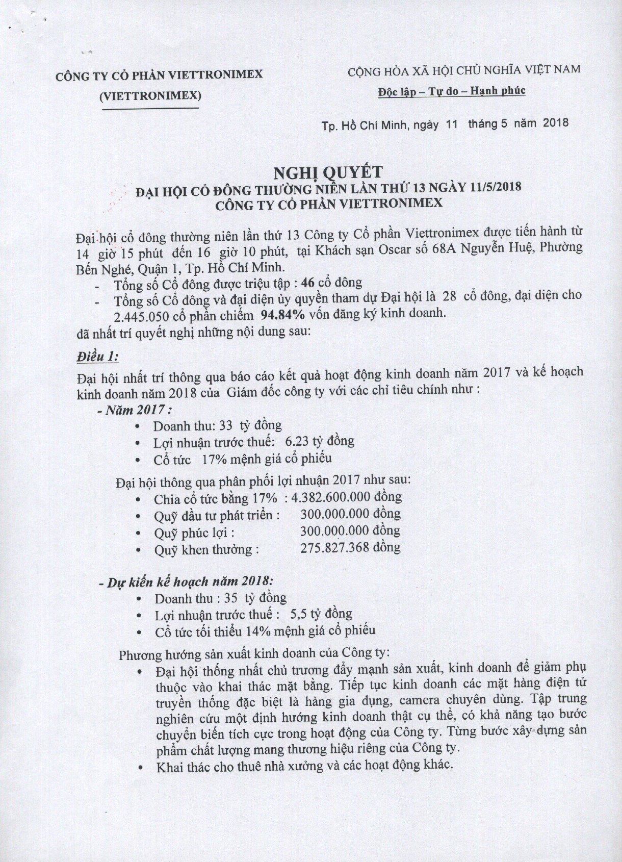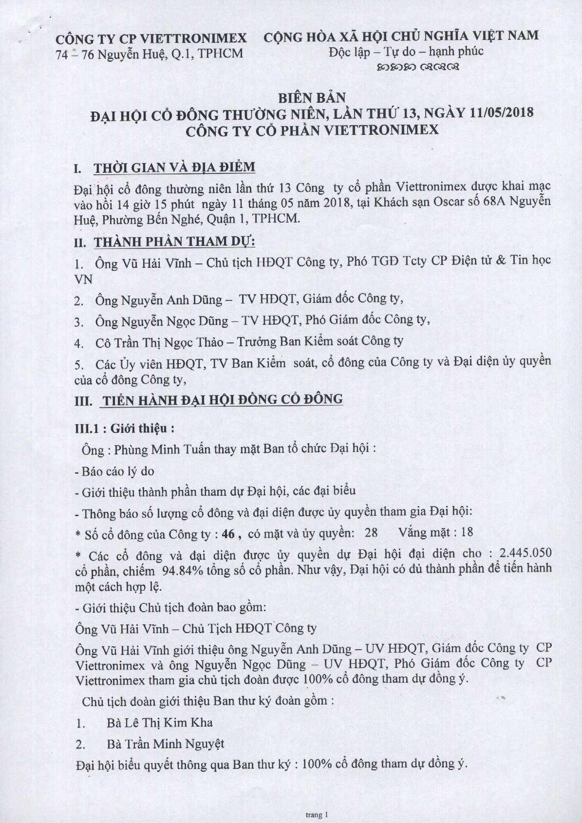 Biên bản và Nghị quyết ĐHCĐ 11/5/2018